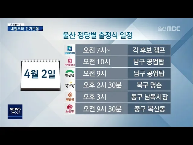 ◀ANC▶내일(4/2)부터 4.15 총선 공식 선거운동의 막이 오릅니다.코로나19 확산 우려로 선거운동이 위축된데다이번 선거 기간 여론조사를 실시하는 지역 언론사도 없어 깜깜이 선거가 되지 않을까우려가 나옵니다.최지호 기자. ◀END▶ ◀VCR▶내일(4/2)부터 시작되는 공식 선거운동을 앞두고 각 정당마다 출정식과 대...