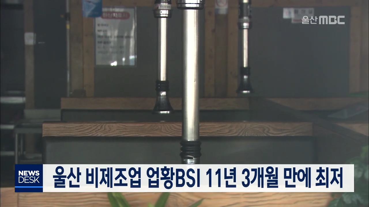 코로나19 확산으로 울산지역 비제조업 업체들의 경기가 11년 3개월만에 최저 수준으로 떨어졌습니다. 한국은행 울산본부가 발표한 3월 울산지역 기업경기조사 결과에 따르면 울산 비제조업 업황BSI는 46으로 전월대비 13포인트 하락했습니다. 반면 3월 제조업 업황BSI는 석유화학을 중심으로 긍정적인 답변이 늘어나며 전월...