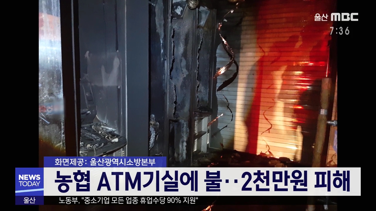 어제(3/29) 저녁 7시 20분쯤 울주군 언양읍에 있는 모 농협 ATM기 실에서 불이나 실내 20여 제곱미터와 ATM기 4대를 태우고 소방서 추산 2천만원의 재산피해를 낸 뒤 20분만에 꺼졌습니다. 경찰과 소방당국은 목격자들의 진술을 토대로 정확한 화재원인을 조사중입니다.