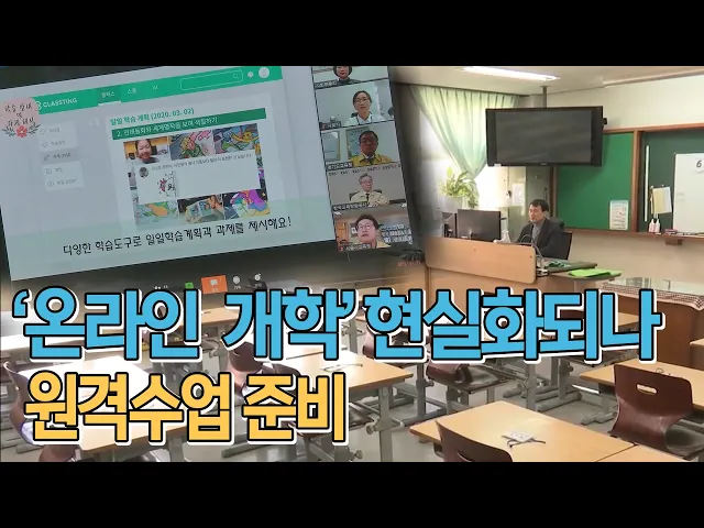 ◀ANC▶다음 달 6일이면 새 학기가 시작되는데 아직 코로나19 유행이 끝나지 않아서우려가 적지 않습니다.개학을 하더라도 집에서 수업을 받는 이른바 '온라인 개학'을 할 수도 있어서학교들이 원격 수업 시스템을 마련하고 있습니다.유희정 기자. ◀END▶ ◀VCR▶스튜디오에 앉은 교사가 교육 자료를 보며 수업을 진행...