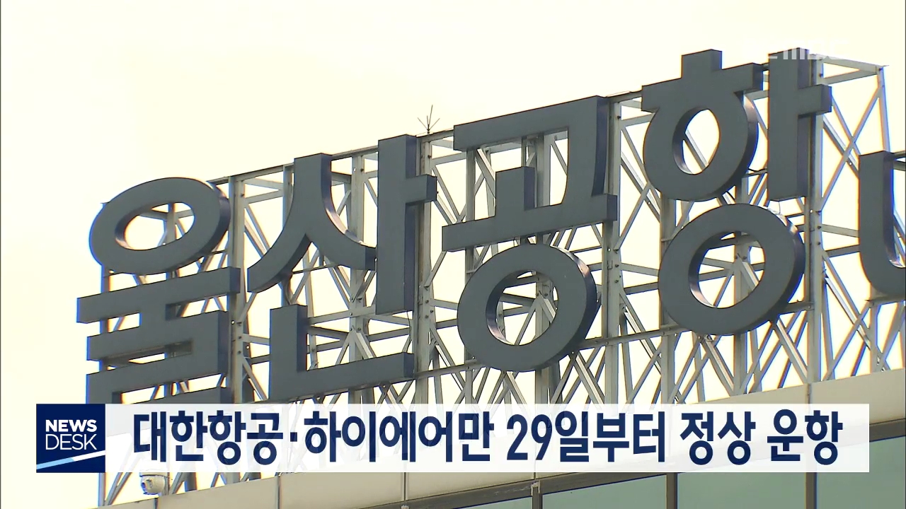코로나19 확산으로 항공업계가 비상경영 체제에 들어가면서 울산공항도 항공편이 감소된 가운데 대한항공과 하이에어만 정상 운항합니다. 울산공항은 오는 29일부터 시행될 항공기 운항 시간표에 따라 대한항공과 소형항공사인 하이에어가 서울 왕복 편을 각각 하루 2차례씩 매일 운행한다고 밝혔습니다. 한편 에어부산은 ...