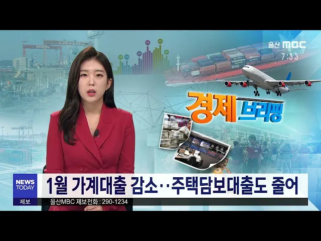 ◀ANC▶주택담보대출과 기타대출 모두 감소하며울산 가계대출이 감소세를 보이고 있습니다.경남은행과 부산은행 등 4개 지방은행이신용등급 하향 조정 검토 대상에 올랐습니다.경제브피링, 정인곤 기자입니다. ◀END▶ ◀VCR▶한국은행 울산본부는 올해 1월 울산 지역 금융기관 가계 대출액이 전달 대비 726억 원이 줄...