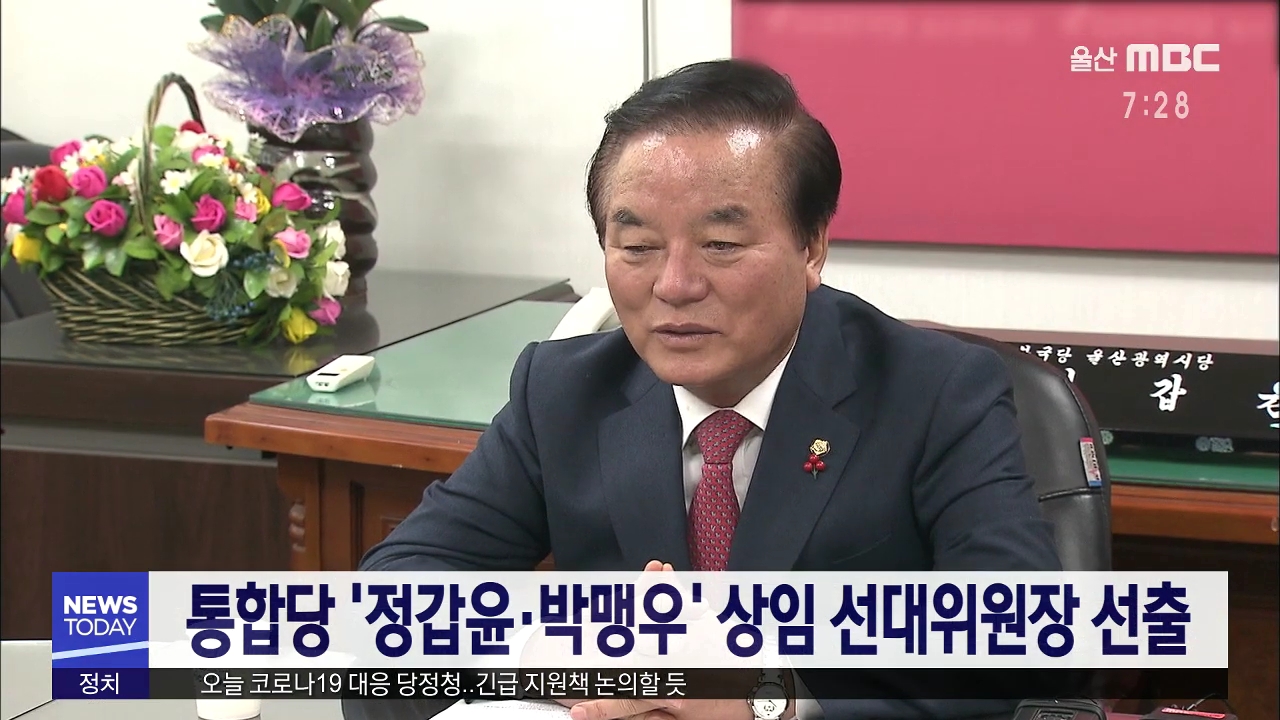 미래통합당 울산시당은 오늘(3/24) 정갑윤, 박맹우 두 의원을 4.15 총선 상임 선거대책위원장으로 선출했습니다. 통합당은 두 현역 의원이 선대위를 이끌고, 6개 지역구에 출마한 후보들이 공동 선대위원장을 맡아 참모들과 함께 총선 승리 전략을 구상할 계획이라고 밝혔습니다. 선대위 발족식은 내일(3/25) 오후 2시 시당...