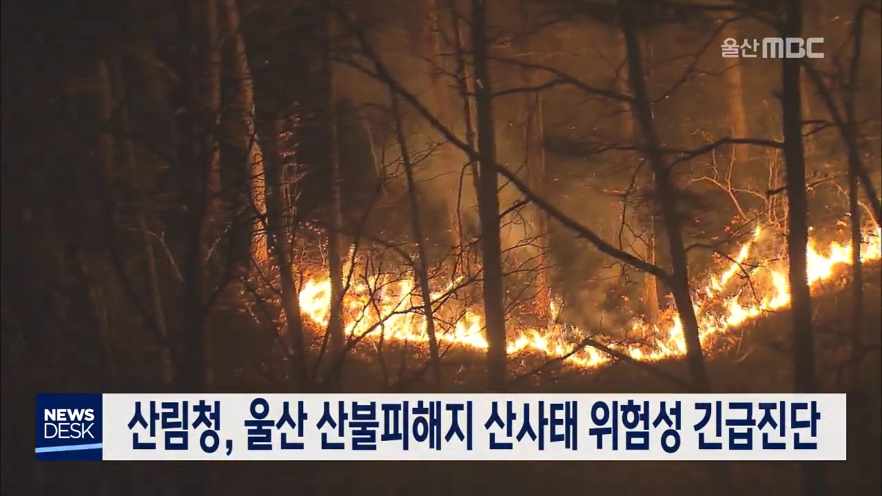산림청은 오늘(3/25)부터 울주군 산불 피해지의 2차 피해를 막기 위해 산사태 위험성 긴급 진단에 나섰습니다. 산사태 분야 전문가로 구성된 긴급진단팀은 지리정보시스템 분석과 드론 촬영, 현장 조사를 통해 긴급조치가 필요한 대상지를 최종 선정했습니다. 산림청은 긴급진단 결과를 바탕으로 필요한 공정과 예산을 산출...