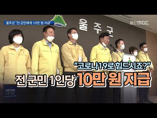 ◀ANC▶울주군이 코로나19로 타격을 입은 지역 경제를 살린다며 모든 군민에게 10만 원씩 지원금을 주기로 했습니다.소득 수준에 상관없이 지원금을 주는 건전국 첫 사례인데, 기대와 우려가 교차하고 있습니다.유희정 기자. ◀END▶ ◀VCR▶울주군 남창옹기종기시장.코로나19 유행으로 손님이 뚝 끊기자지난달 23일 이...