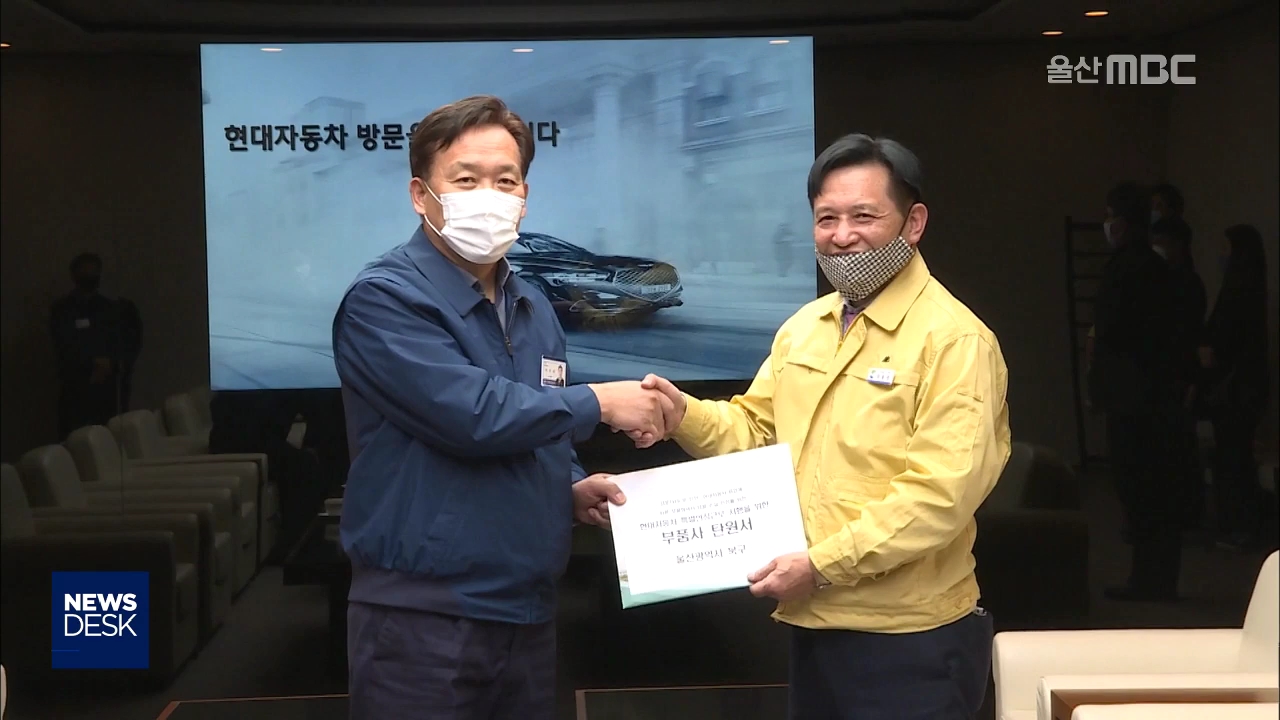 코로나19 사태로 경영 위기에 처한 자동차 협력업체 대표들이 현대자동차에 근무시간 연장을 요청했습니다. 울산 북구지역 4개 산업단지 협의회 대표들은 오늘(3/20) 북구청을 통해 완성차 특별연장근로 시행을 위한 탄원서를 현대차 노사에 보냈다고 밝혔습니다. 앞서 현대차도 생산 손실 만회를 위해 한시적으로 주 최대 ...