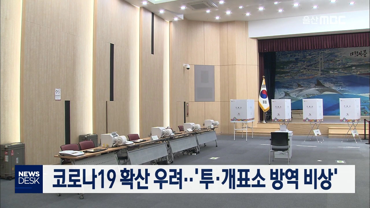 코로나19 확산 우려로 4.15 총선 투표소와 개표소 등 선거 관련 시설 관리에 비상이 걸렸습니다. 울산시 선거관리위원회는 지역 284개 투표소와 각 구·군 개표소 5곳에 대한 방역 계획과 확진 환자와 의심 환자, 일반 유권자 등의 동선을 분리하는 방안 등을 고심하고 있습니다. 또 모든 투표소에 손소독제를 제공하고, 투...