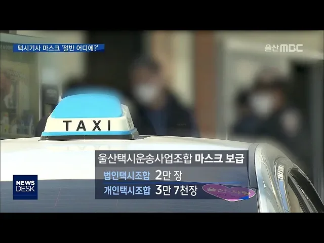 ◀ANC▶코로나19의 감염 우려가 높은 택시기사들에게 일부 지자체에서는 마스크를 지급하고 있습니다.그런데 1인당 5장씩 지급하라고 울산시가 택시회사에 나눠준 마스크 일부가 사라졌다는 의혹이 제기됐습니다.김문희 기자입니다. ◀END▶ ◀VCR▶울산 남구의 한 법인 택시회사.울산시가 지급한 마스크 배급을 두고 ...