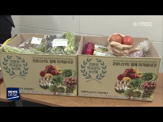 ◀ANC▶코로나19 유행으로 개학이 늦어지면서농어촌이 어려움을 겪고 있다는 소식 어제 전해드렸는데요.지자체가 학교 급식용으로 생산한 친환경 농산물을 대신 팔아주는 등농가 돕기에 나섰습니다.유희정 기자. ◀END▶ ◀VCR▶농협 하나로마트 울산점에 설치된학교 급식용 농산물 특별 판매대입니다.3월 개학 시점에 ...