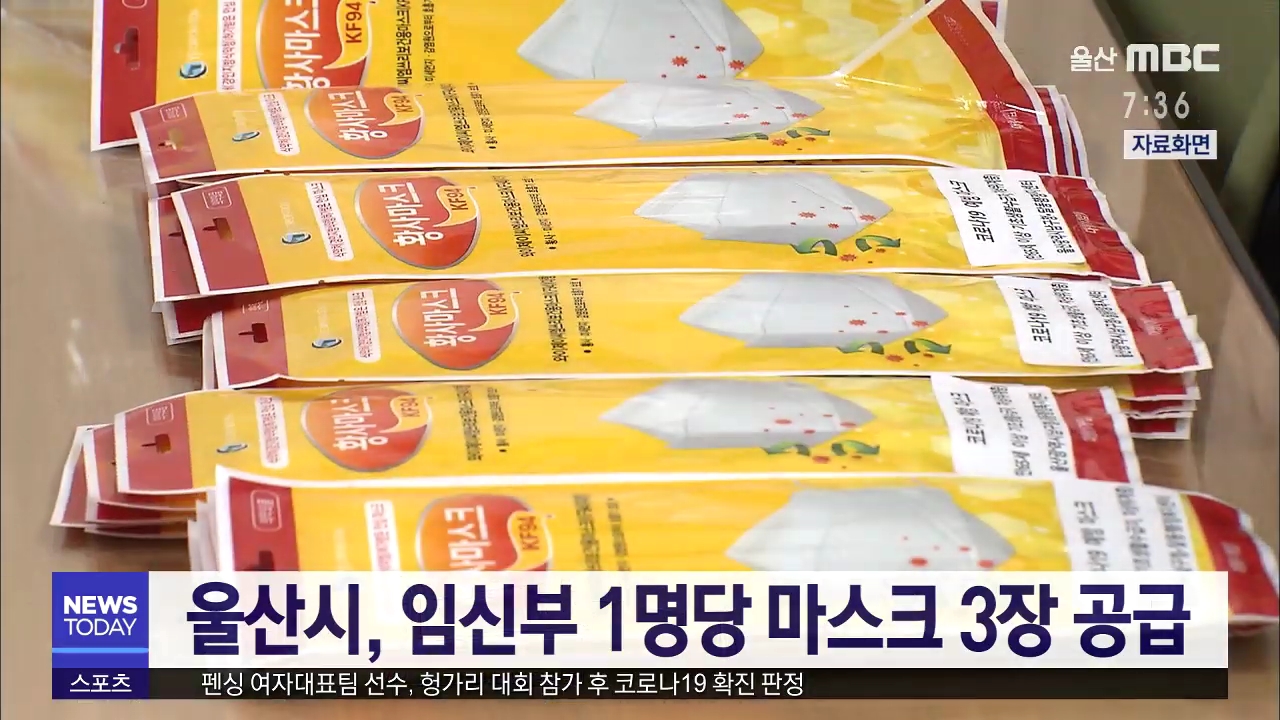 울산시는 지역에서 임신부 확진환자가 나온 것을 계기로 모든 임신부들에게 마스크를 무료로 공급합니다. 무료 공급 대상은 울산에 주소를 두고 있는 임신부 7천 명으로, 1인당 3매씩 모두 2만 1천 장이 공급됩니다. 북구는 오늘부터(3/18) 중구와 남구, 동구와 울주군은 내일(19)부터 배부하며, 배부 방법 등 자세한 사항...