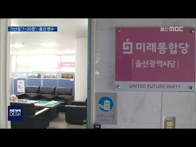 미래통합당 울산시당은 총선과 함께 치러지는 구의원 재·보궐 선거 후보를 확정했습니다. 박부경 전 의원의 선거법 위반에 따른 당선무효형으로 치러지는 남구바 선거구에는 손세익 대현동 주민자치위원장이, 박상복 전 의원의 사퇴로 치러지는 북구가 선거구에는 정치락 전 시의원이 각각 후보자로 결정됐습니다.//