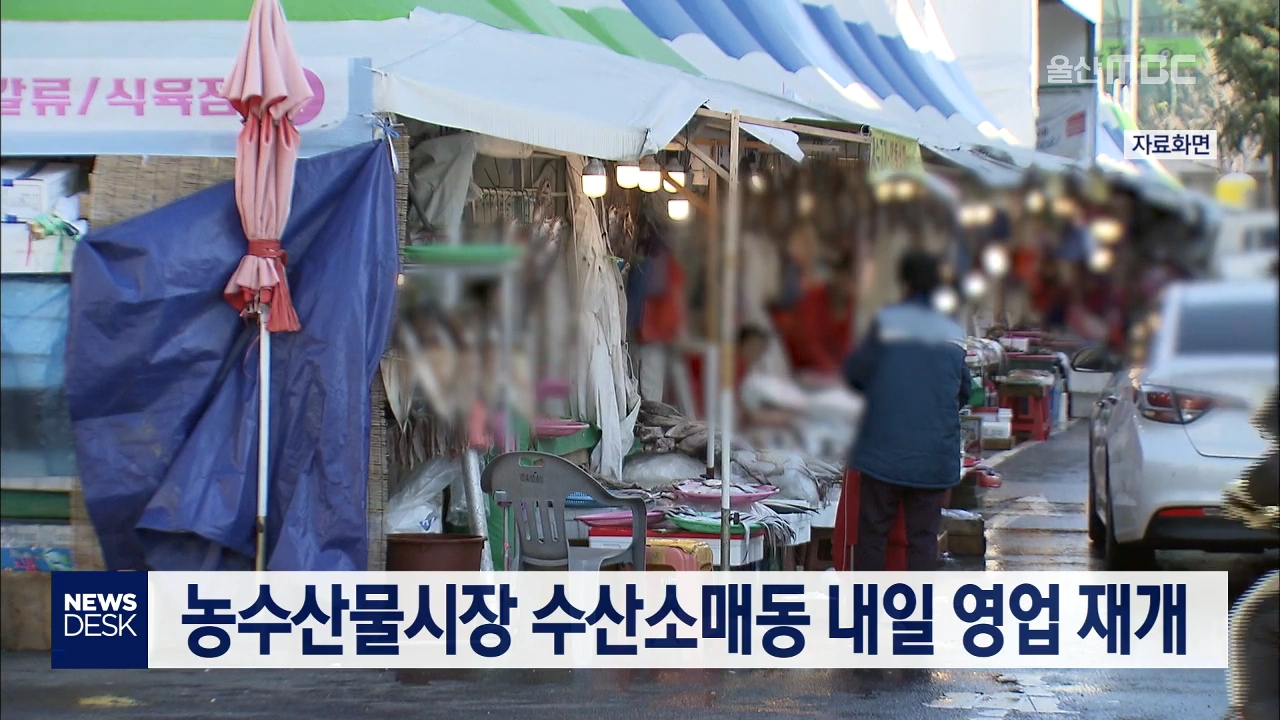 코로나19 확산 예방을 위해 자체 임시 휴업을 실시해온 농수산물도매시장 수산소매동이 내일(3/12)부터 영업을 재개합니다. 수산소매동 번영회는 코로나19 확산세가 진정되고 있고 영업 재개에 관한 시민들의 문의가 많아 영업 재개를 결정했다고 밝혔습니다. 수산소매동은 확진자 방문이 없었지만 지난달 26일부터 자체적...