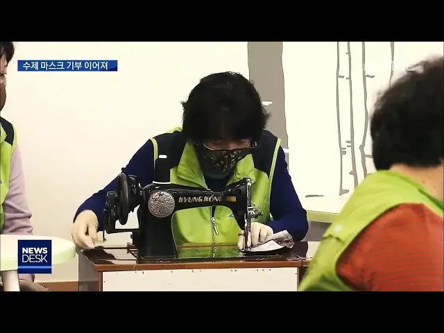 ◀ANC▶'코로나 19' 사태로 보건용 마스크 구하기가어려운 요즘 직접 만든 마스크를 기부하는 주민들이 있어 눈길을 끌고 있습니다.이렇게 한땀 한땀 만든 마스크는혼자 사는 노인과 어려운 이웃들에게전달된다고 하는데요.이용주 기자가수제 마스크 봉사 현장에 다녀왔습니다. ◀END▶ ◀VCR▶코로나 19 확산으로 임시...