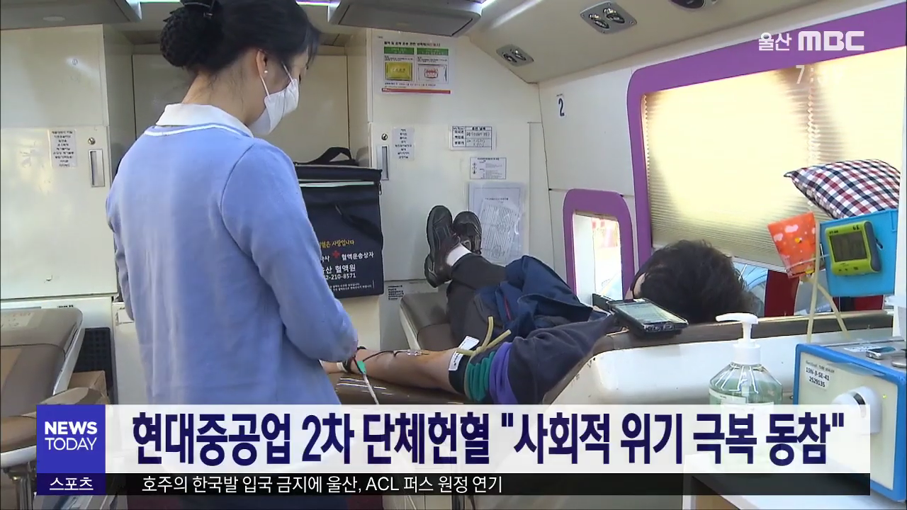 현대중공업그룹 임직원들이 코로나19 확산에 따른 혈액 수급 위기를 해소하기 위해 2차 단체 헌혈을 실시합니다. 이 회사 계열사 임직원들은 오늘(3/5)과 내일 이틀 동안 울산 본사에 마련된 이동 버스를 방문해 헌혈에 동참했습니다. 한영석·가삼현 공동 대표이사는 담화문을 통해 코로나19 예방과 사회적 위기 극복을 위...