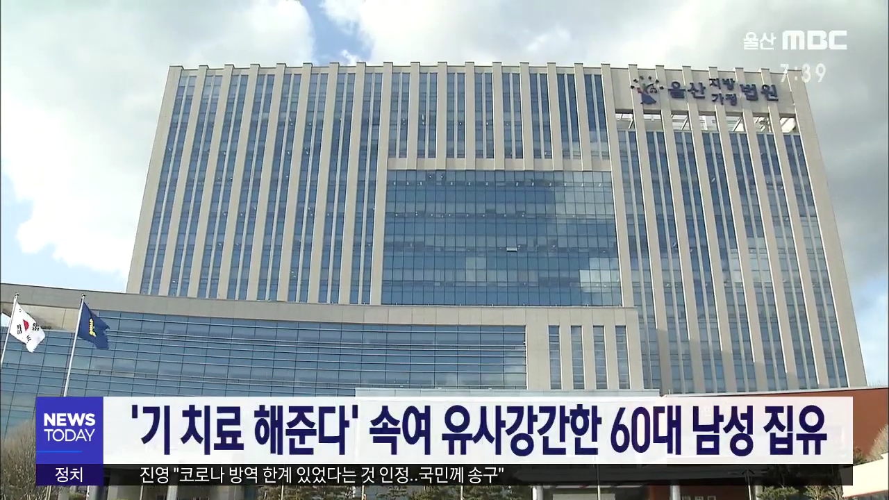 울산지방법원 제11형사부는 유사강간치상 혐의로 기소된 61살 A씨에게 징역 2년 6개월에 집행유예 3년을 선고했습니다. A씨는 지난해 7월 자신이 운영하는 상점에서, 50대 여성에게 기 치료를 해주겠다고 속인 뒤 유사강간해 상해를 입힌 혐의로 기소됐습니다. 재판부는 A씨가 범행을 인정하고 전과가 없는 점을 고려했다고...
