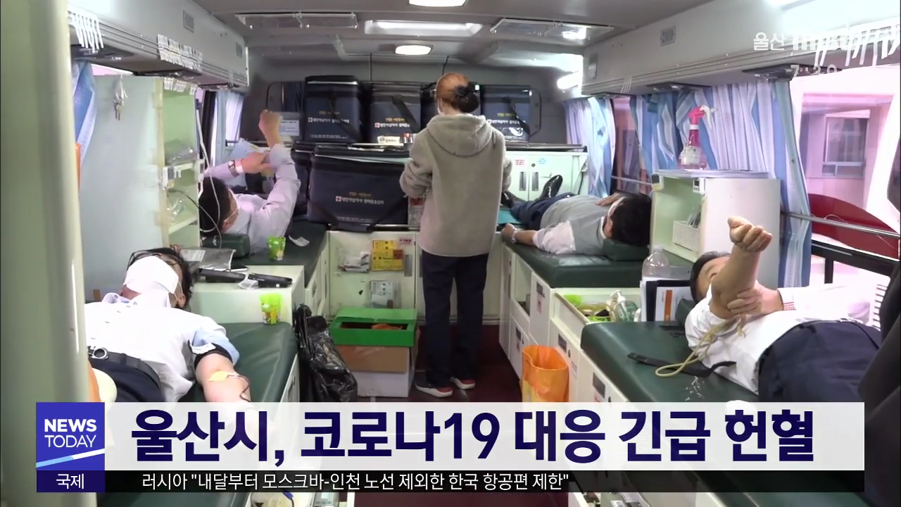 코로나 19 확산으로 혈액 수급에 차질을 빚자 울산시가 오늘(2/27) 시청 햇빛광장에서 긴급 헌혈 행사를 가졌습니다. 울산시는 동절기 혈액 보유량이 감소하는 시기에 코로나 19로 외출이 줄면서 개인 헌혈이 감소해 적정혈액 보유량 5일분을밑돌고 있다고 밝혔습니다. //