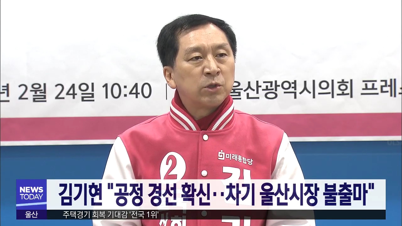 미래통합당 김기현 예비후보는 오늘(2/24) 울산시의회 프레스센터에서 기자회견을 열고 남구을 선거구에서의 공정 경선을 제안했습니다. 김 후보는 공천심사 결과가 나오기 전부터 근거없는 소문과 낭설이 난무하고 있다며, 중앙당의 개혁 공천 의지가 퇴색될 수 있다는 생각에 남구을에서의 공정한 경선을 강력하게 촉구한...