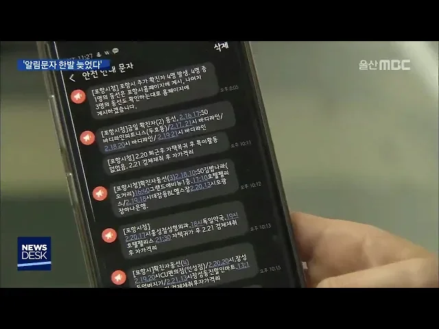 ◀ANC▶코로나19 확진자가 혹시 내 주변을 다녀갔는지시민들의 불안이 커지고 있습니다.그런데도 울산시는 이를 알리지 않다 뒤늦게오늘(2/24) 오후에야 알림문자를 보완했는데요,인근 부산과 경주는 처음부터 이를 시민들에게공개해 울산시와 대조를 보입니다.김문희 기자. ◀END▶ ◀VCR▶울산에서 첫 확진자가 발생...