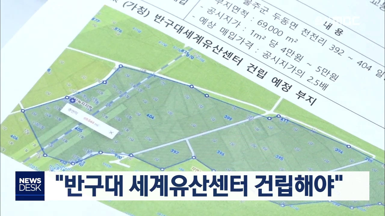 울산 대곡천 암각화군 관광자원화를 위해서 가칭 반구대 세계유산센터를 건립해야 하다는 조언이 나왔습니다. 한국전통문화대학교 산학협력단은 오늘(2/24) 시청에서 '대곡천 암각화군 역사관광자원화 사업 용역 최종 보고회'를 갖고 기존 암각화 박물관을 확장·이전해 새로운 센터의 건립 필요성을 제시했습니다. 또, 반구...