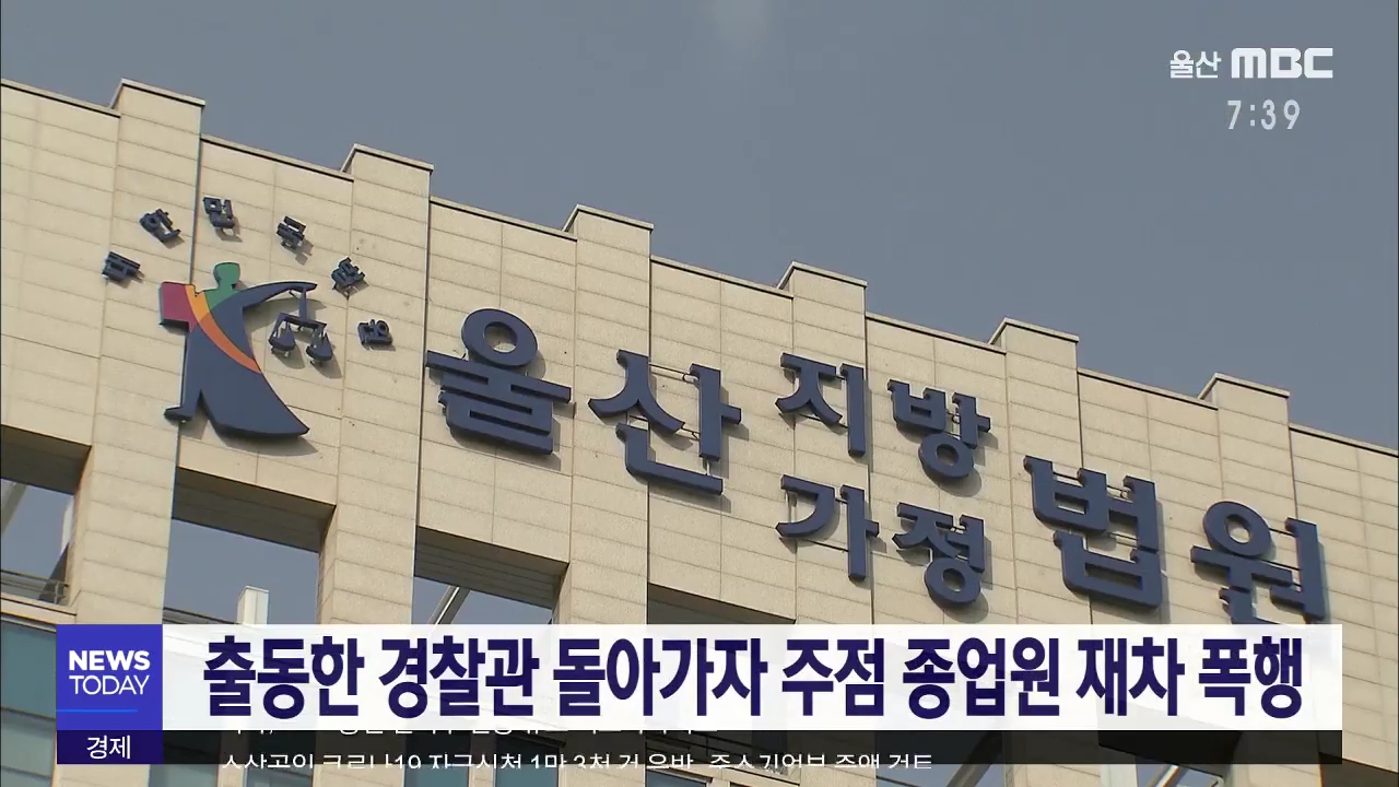 울산지법 형사1단독 박무영 부장판사는 주점 종업원을 폭행한 일로 경찰관이 출동했지만, 경찰관이 돌아가자 재차 주점을 찾아가 피해자에게 폭력을 행사한 혐의로 재판에 넘겨진 42살 A씨에게 징역 10개월을 선고했습니다. A씨는 지난해 7월 울산의 한 주점에서 술에 취해 잠을 자던 중 종업원 36살 B씨가 자신을 깨운다는...