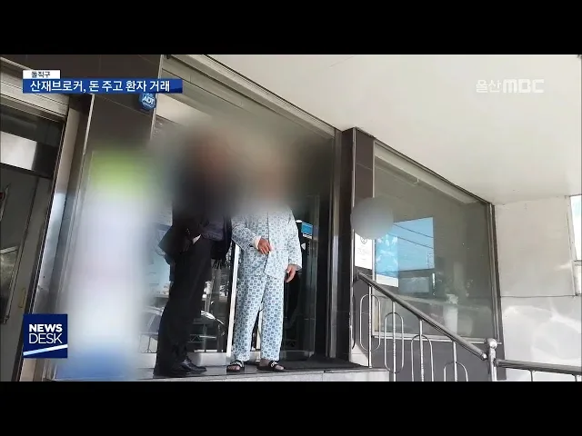 ◀ANC▶산업재해 보험료가 지난해에만 5조5천억원 넘게지급됐지만 부정수급 논란이 끊이지 않습니다.일부 병원에서는 원무과 직원들이 브로커에게돈을 받고 환자를 소개해주고 있다는 의혹이 제기되고 있습니다.탐사기획 돌직구, 설태주 기자 입니다. ◀END▶ ◀VCR▶산재환자들이 많이 찾는 울산의 한 병원입니다.원무...