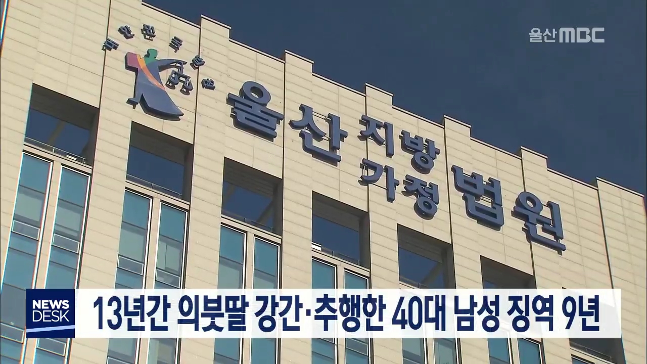 울산지방법원 제11형사부는 성폭력처벌법과 청소년성보호법 위반 등의 혐의로 기소된 47살 A씨에게 징역 9년을 선고했습니다. A씨는 지난 2005년 동거하던 여성의 미성년 딸을 강제로 추행하는 등 지난해까지 7차례에 걸쳐 의붓딸을 강간하거나 추행한 혐의로 기소됐습니다. 재판부는 A씨가 13년에 걸쳐 반인륜적인 범행을 ...