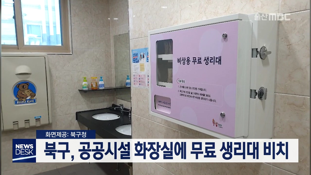 북구는 여성들이 비상시에 무료로 생리대를 사용할 수 있도록 지역 내 공공시설 화장실에 비상용 생리대를 비치합니다. 북구청은 구청과 청소년문화의집 2곳에서 생리대 자판기를 시범 운영하고 박상진호수공원과 행정복지센터 등에 설치를 늘려갈 것이라고 밝혔습니다. //