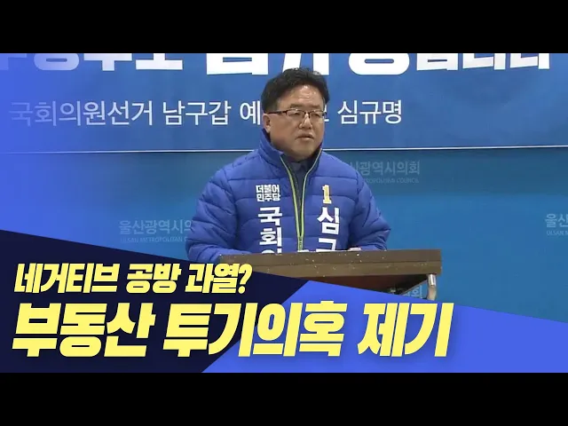 ◀ANC▶더불어민주당 남구갑 심규명 예비후보가같은 선거구에 출마한 송병기, 이채익 후보의 부동산 투기 의혹을 제기했습니다.두 후보 모두 정상적인 부동산 취득이라며대응할 가치가 없다는 입장인데, 경쟁 후보 간네거티브 공방이 과열 조짐을 보이고 있습니다.최지호 기자. ◀END▶ ◀VCR▶민주당 남구갑 지역위원...