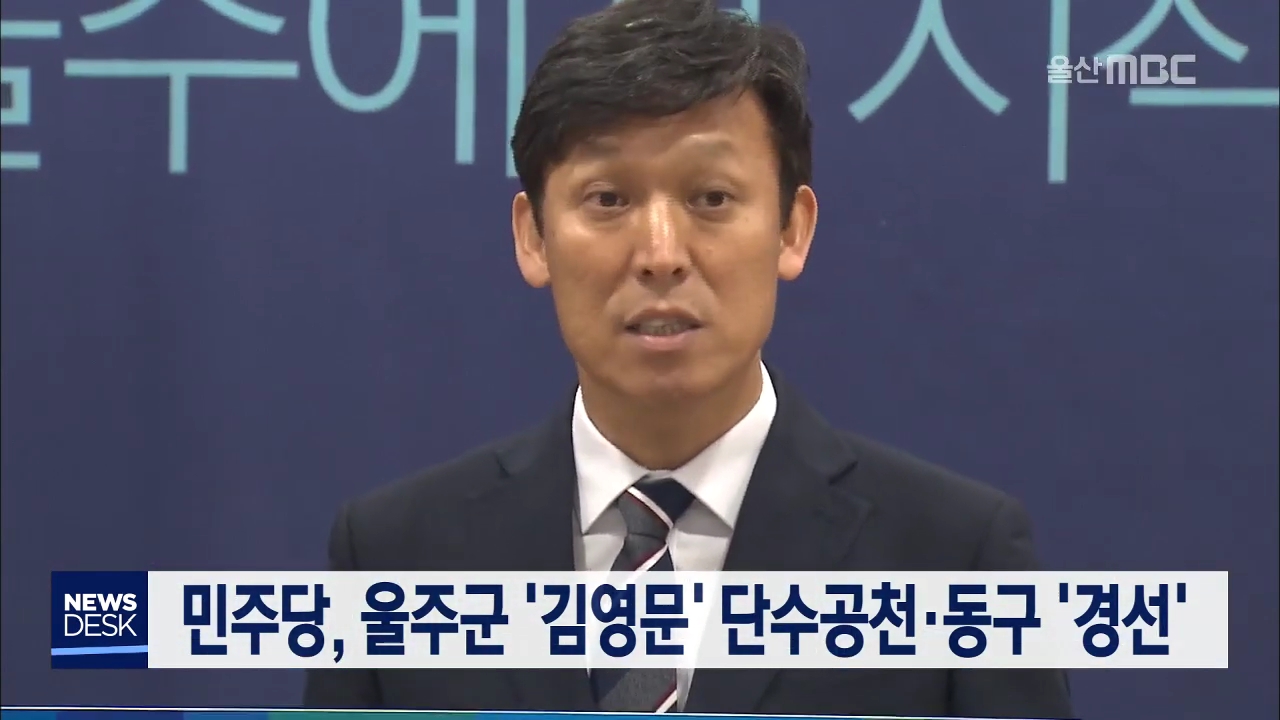 더불어민주당이 울주군을 단수공천 지역으로 분류하고 김영문 전 관세청장을 단수후보로 확정했습니다. 민주당이 어제(2/15) 2차 공천 심사 결과를 발표한 가운데, 김영문·송규봉·구광렬· 오상택 등 4명의 예비후보가 출마한 울주군에 김영문 후보를 단수공천하고, 동구를 경선지역으로 확정했습니다. 앞서 민주당은 남구갑...