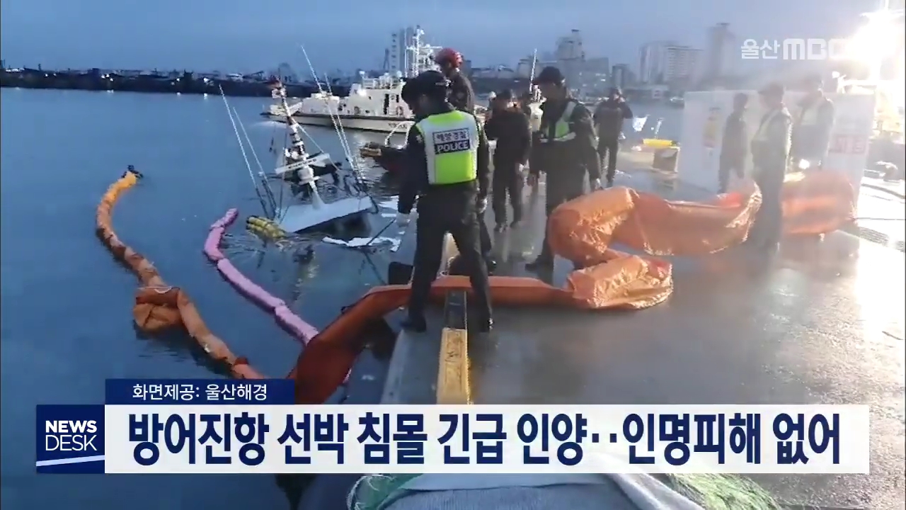오늘(2/16) 오전 6시 25분쯤 동구 방어진항 인근 해상에서 정박 중이던 20톤급 선박이 침몰하고 있다는 신고가 접수돼 해경이 긴급 인양했습니다. 당시 선박에는 선원 1명이 타고 있었지만 다행히 인명피해는 없었습니다. 해경은 취침 중 선박 안으로 물이 차올랐다는 선원의 말 등을 토대로 사고 발생 경위를 조사하고 있...