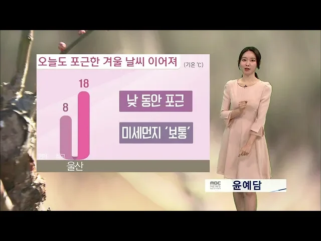 오늘 한낮 기온 최고 18도.. 계절을 두 달 가량 앞서가1)날이 갈수록 따뜻합니다. 오늘은 이맘때 겨울 옷차림보다 좀 더 가볍게 입으셔도 되겠는데요, 오늘 울산의 한낮 기온 18도까지 오르면서 계절을 두 달 가량이나 앞서가겠습니다.2)그렇다면 이대로 추위가 물러가는 걸까요? 주말 사이에 전국적으로 비가 오거나 눈이 ...