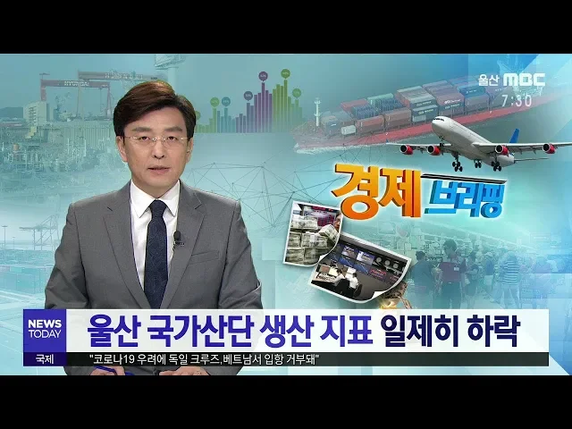 ◀ANC▶경기 침체로 지난해 울산의 국가산업단지 2곳의 가동률를 비롯한 생산 지표가 일제히 하락했습니다.울산 아파트 가격 급등세가 계속되는 가운데이번주 전세가격 상승률이 전국 최고치를기록했습니다.경제브리핑, 이돈욱 기자입니다. ◀END▶ ◀VCR▶지난해 울산미포와 온산 국가산업단지의 생산과 수출, 고용, ...