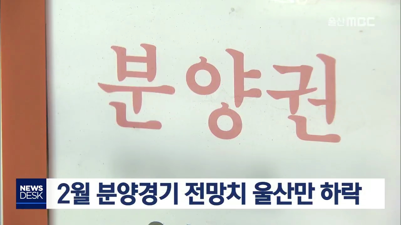 주택사업자들 체감 분양경기를 나타내는 분양경기실사지수가 전국에서 울산만 하락한 것으로 나타났습니다. 주택산업연구원이 조사한 2월 울산지역 분양경기실사지수는 89.4로 전달에 비해 10.6 포인트나 하락했습니다. 반면 울산을 제외한 전국 모든 지역에서는 일제히 상승하며 전국 평균 지수가 10.1 포인트 올랐는데, ...