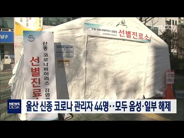 울산시는 신종 코로나와 관련해 44명의 관리자가 발생했지만 양성 환자는 없었고 상태도 양호하다고 밝혔습니다.울산시는 신종 코로나 확진자와 접촉한 7명가윤데 5명은 이미 자가격리 해제됐고,중국 우한을 다녀 온 13명도 어제(2/7)자로 능동감시에서 해제됐다고 설명했습니다.또 19명의 의사환자 모두 검사 결과 음성으...
