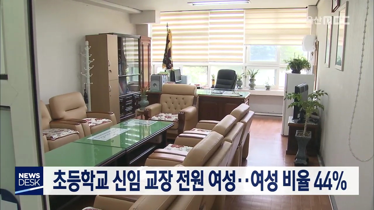 올해 승진한 신임 초등학교 교장 6명 전원이 여성으로 채워지는 등 초등학교 교장의 여성 비율이 높아지고 있습니다.울산시교육청은 여성 관리자 비율이 갈수록높아지면서 올해 전체 초등학교 교장 119명가운데 52명이 여성으로, 여성 교장 비율이절반에 가까운 44%라고 밝혔습니다.2011년 기준 울산 지역 초등학교 교장의 ...