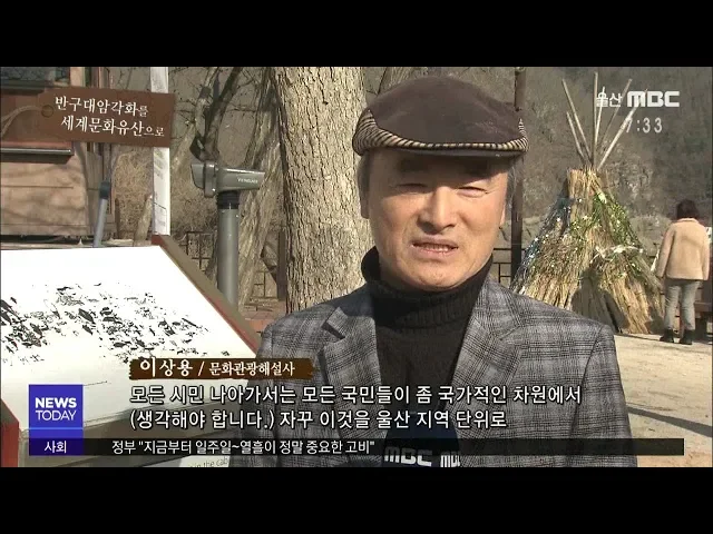 이상용/문화관광해설사 모든 시민 나아가서는 모든 국민들이 좀 국가적인 차원에서(생각해야 합니다.)자꾸 이것을 울산 지역 단위로 머무를 것이 아니고, 좀 국가적인 차원에서 발 벗고 나서야지 해결이 되지 않을까 싶습니다. 그리고 또 모든 분들이 좀 더 여기에 대해서 관심을 적극적인 관심을 가져주셔야만 (유네스코 ...