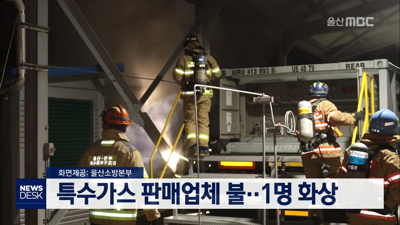 오늘(2/2) 새벽 4시21분쯤 (울산) 남구 성암동의 한 특수가스업체에서 폭발 사고로 인한 불이 났습니다. 이 불로 작업자 1명이 얼굴과 복부 등에 2도 화상을 입어 병원으로 이송됐습니다. 경찰은 삼불화질소를 빈 저장탱크로 옮겨 담는 과정에서 폭발 사고가 발생한 것으로 보고 정확한 사고 경위를 조사하고 있습니다. //