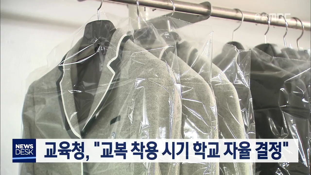 교복 구매 시기가 2월에 집중돼 교복 업체의 물량 확보가 어렵다는 지적에 따라 교복 착용 시기가 학교별로 조정됩니다. 울산시교육청은 교복을 제때 구하지 못하는 신입생을 위해 교복 착용 시기를 학교 여건에 맞게 조정하고, 예비소집과 입학식을 활용해 안내하도록 했다고 밝혔습니다. 한편 명찰 고정 부착이 개인정보 ...