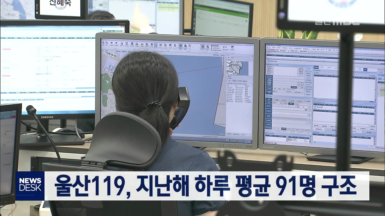 울산소방본부 119구조·구급대가 지난해 12분마다 1회씩 출동해 하루 평균 91명을 구조한 것으로 나타났습니다. 울산소방본부는 지난해 6만3천5백여 차례를 출동해 3만3천여 명의 인명을 구조했다고 밝혔습니다. 이 중 구급대 이송 환자는 3만1천여 명으로, 40~60대가 전체 이송 환자의 50%를 차지했습니다.//