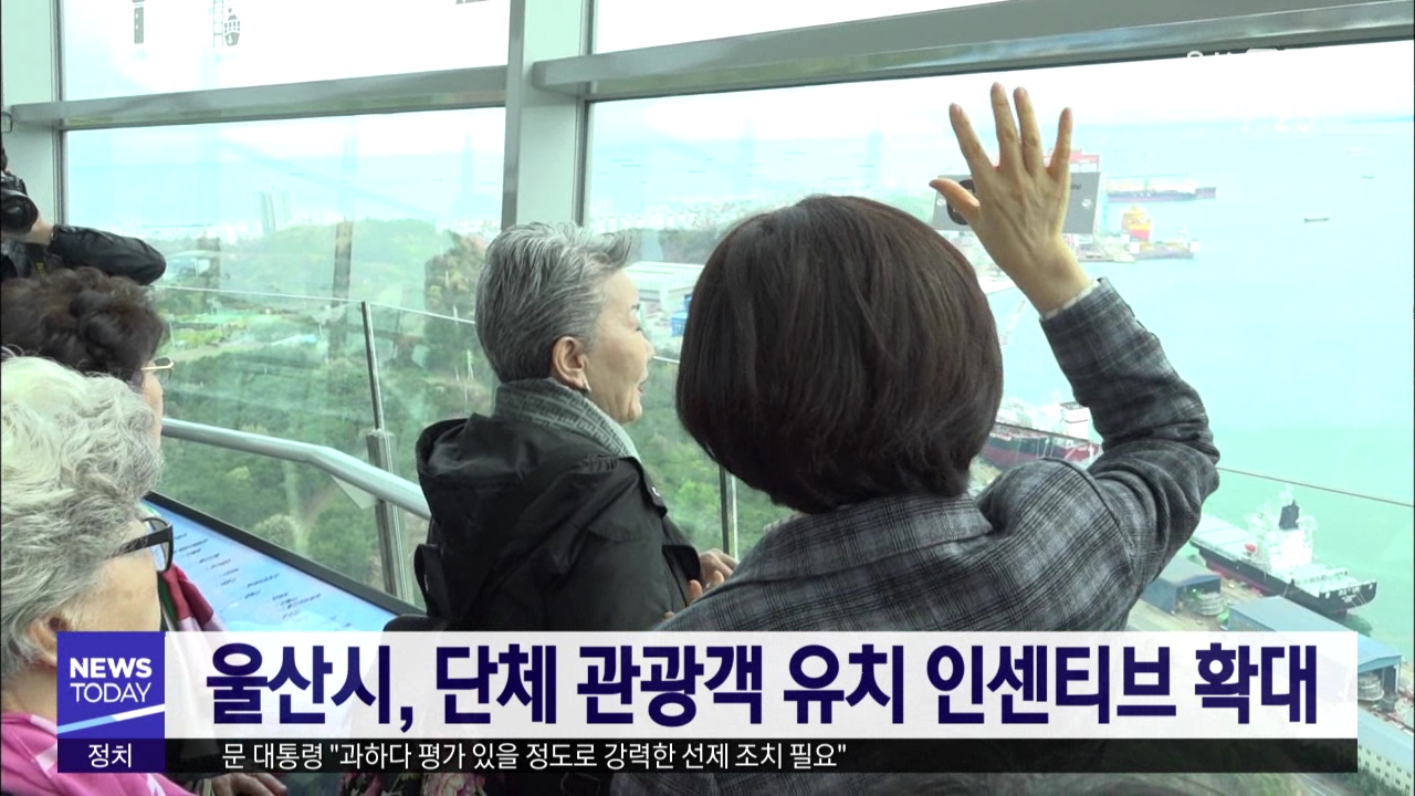 울산시가 단체 관광객 유치를 위한 인센티브를 확대해 내·외국인 6만 8천 명을 유치할 계획입니다. 울산시는 올해 6억 원의 인센티브를 제공하며, 특히 숙박·체험비 지원의 경우 내국인 20명 이상에서 15명 이상으로 지원 기준을 완화했습니다. 시는 인센티브 시행으로 울산 단체 관광객이 지난 2015년 5천500여 명에서 지...