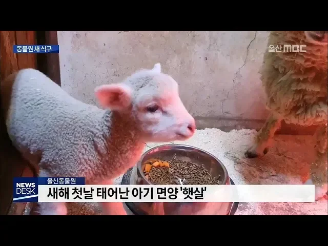 ◀ANC▶올 겨울 울산대공원 동물원에서양, 염소, 나귀 등 다양한 동물이새로운 아기 식구를 맞았다고 하는데요.특히 새해 첫날에 태어난 아기 면양'햇살'이는 사육사들의 사랑을독차지하고 있다고 합니다.이용주 기자가 다녀왔습니다. ◀END▶ ◀VCR▶엄마가 먹는 사료에 입을 대 보지만이내 관심 없는 듯 주변을 서성...