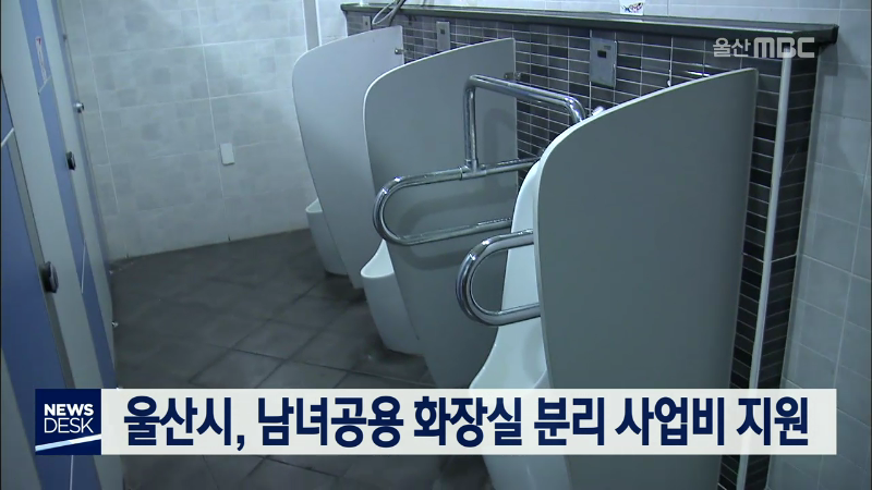 울산시가 민간 남녀 공용 화장실 분리 지원사업을 실시합니다. 국민참여예산제에 의해 추진되는 이 사업은 민간 개방화장실 1곳 당 1천만 원 한도 내에서 화장실 공사비의 50%를 지원합니다. 신청 대상은 민간공중화장실 또는 개방화장실로 지정된 화장실로 구·군청 환경위생과에 우편 또는 방문 접수하면 됩니다.//