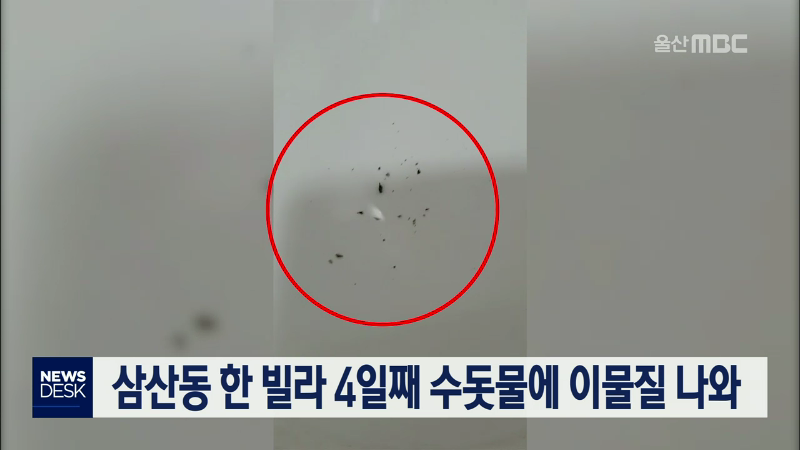 울산시 남구 삼산동의 한 빌라에서 4일째 수돗물에 이물질이 섞여 나와 주민들이 불편을 호소하고 있습니다. 상수도사업본부는 해당 건물 1층에 위치한 공동 수도계량기에서 나오는 물의 상태는 문제가 없었다며, 가정으로 이어지는 내부 배관 문제로 보인다고 밝혔습니다. 이럴 경우에는 건물 자체적으로 배관 청소 등 원...