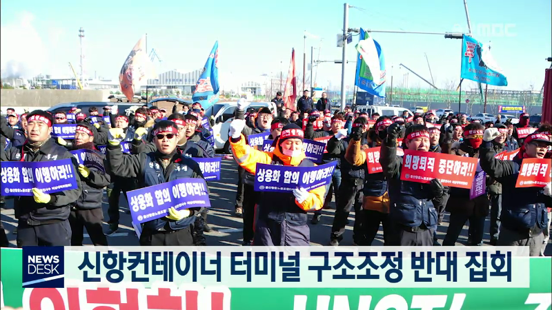 울산항운노조는 오늘(1/15) 울산신항컨테이너 터미널 운영사인 유엔씨티가 추진 중인 구조조정이 항만 하역업무 안전을 위협하고 있다며 철회를 요구하는 집회를 열었습니다. 항운노조는 울산신항에 컨테이너 물동량이 증가하고 있는데도 유엔씨티는 경비 절감을 이유로 안전요원인 신호수에 대한 희망퇴직을 실시하고 있다...