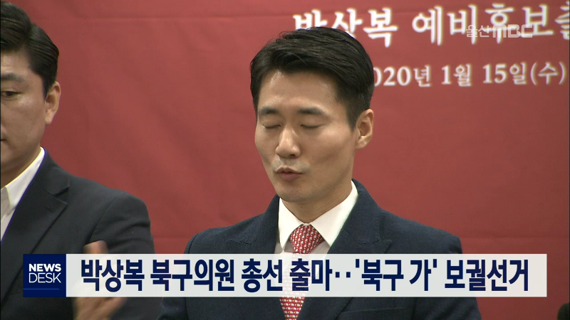 북구 가 선거구 지방의원이 총선 출마를 선언해 총선 때 이 지역 기초의회 의원 선출도 동시에 치러지게 됐습니다. 자유한국당 박상복 북구의회 의원은 국회의원 세대교체에 도전한다며, 현대자동차 기획실에서 일한 경험 등을 살려 참일꾼이 되겠다고 밝혔습니다. 박상복 구의원의 사퇴로 북구 가 선거구 농소1·강동·송정...