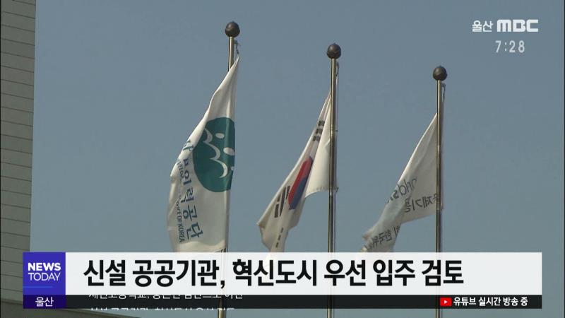 ◀ANC▶ 앞으로 신설되는 공공기관은 수도권이 아닌 지역 혁신도시에 우선 입주하는 방안이 논의되고 있습니다. 금융감독원이 다음달 5일 울산에서 외부 감사제도 설명회를 갖습니다. 경제브리핑, 설태주 기잡니다. ◀END▶ ◀VCR▶ 국토교통부가 향후 신설되는 공공기관은 혁신도시에 우선 입주하도록 하는 방안을 마련...