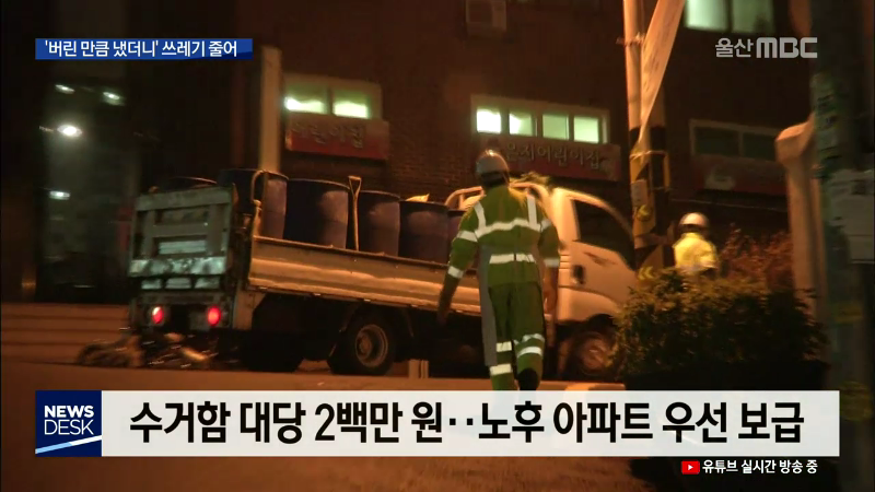 ◀ANC▶ 지난 2016년부터 울산지역 구군마다 신청 아파트를 대상으로 버리는 양만큼 돈을 내는 음식물쓰레기 종량제를 도입하고 있습니다. 그 뒤로 배출량을 집계해 봤더니 음식물 쓰레기가 많게는 절반 넘게 줄었다고 합니다. 이용주 기자. ◀END▶ ◀VCR▶ 1천6백 세대에 달하는 북구 농소동의 한 아파트 단지. 음식물...