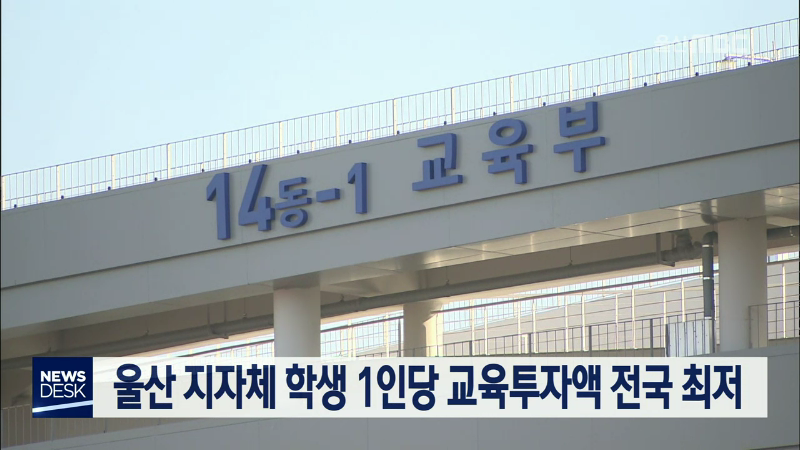 울산 지자체들이 학생들에게 지원하는 교육투자액이 전국에서 가장 적은 것으로 조사됐습니다. 교육부가 밝힌 2018년 자치단체 학생 1인당 교육투자액을 보면 전국 평균은 45만6천원인데 반해 울산은 23만2천원으로 절반 수준에 그치고 있습니다. 자치단체의 최종 예산액 대비 교육투자액 비율을 봐도 전국 평균은 0.94%인...