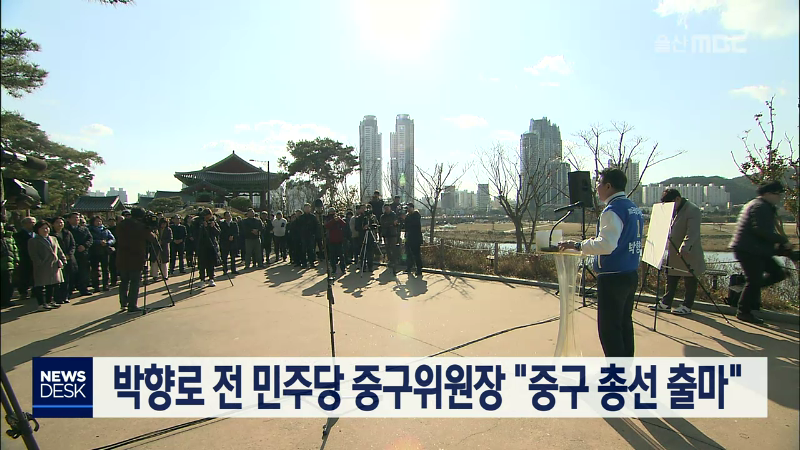 박향로 전 더불어민주당 중구지역위원장이 총선 출마를 선언했습니다. 박 전 위원장은 오늘(1/13) 태화루에서 기자회견을 열고, 실물경제 현장에서 쌓은 경험을 토대로 울산의 경제 위기를 극복할 수 있는 국회를 만들기 위해 중구 지역에 출마하겠다고 밝혔습니다. 박 전 위원장은 울산의 재도약을 위해 제2혁신도시와 종...