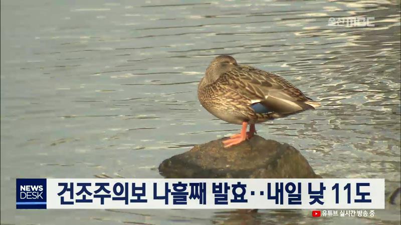 주말인 오늘(1/4) 울산지방은 나흘째 건조주의보가 발효된 가운데 낮 기온이 8.3도까지 올라 평년과 비슷했습니다. 일요일인 내일은 오후부터 구름이 많아지겠으며,영하 1도에서 영상 11도의 기온 분포를 보여 오늘보다 낮 기온이 다소 높겠습니다. 울산기상대는 월요일쯤 비 소식이 있어 건조주의보가 해제될 것으로 내다...